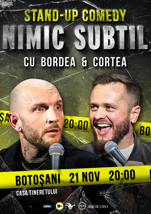 Bilete Botoșani: Stand-Up Comedy cu Bordea & Cortea - "Nimic subtil" - 21 nov, ora 20:00 - Casa Tineretului